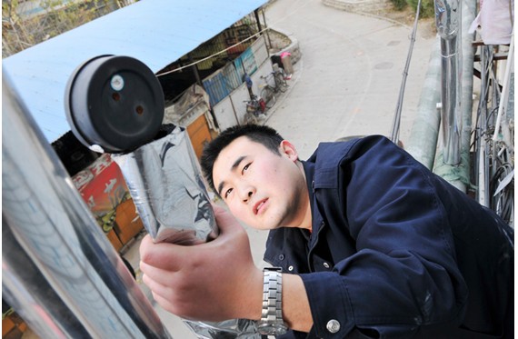來(lái)到11號(hào)樓,胡站長(zhǎng)并沒(méi)有直接進(jìn)入用戶(hù)家,他首先爬上二樓單元屋檐上,檢查了一下進(jìn)、出單元的壓力表,一切正常后,才來(lái)到4樓王大娘家。
