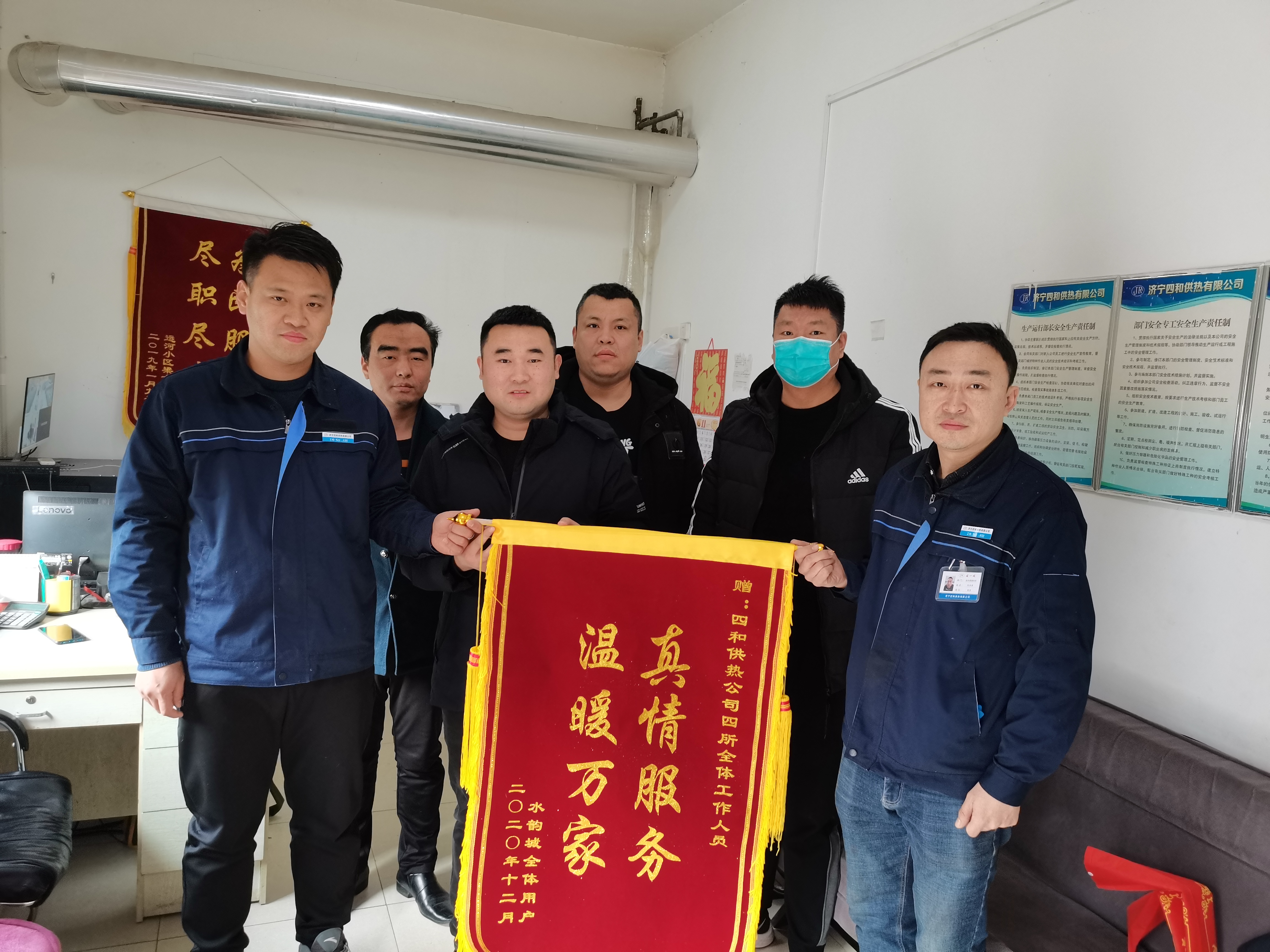 采暖季以來(lái),水韻城、和欣家園、如意印染廠小區(qū)、胡營(yíng)運(yùn)河宜居佳苑小區(qū)等多個(gè)小區(qū)的業(yè)主代表陸續(xù)將錦旗送到濟(jì)寧四和供熱有限公司,對(duì)該公司為小區(qū)供暖做出的貢獻(xiàn)表示感謝。