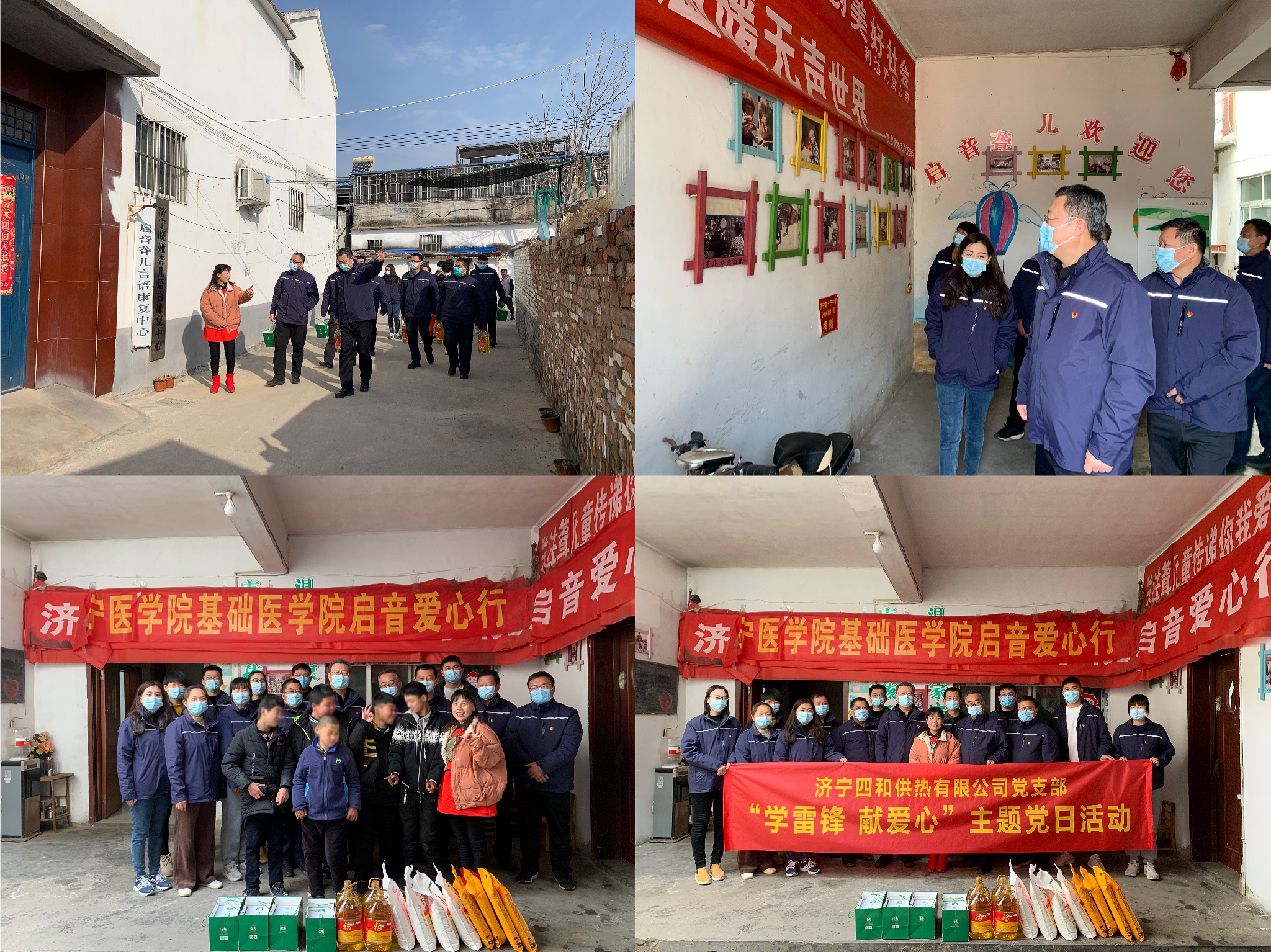 為傳承雷鋒精神,彰顯國(guó)企擔(dān)當(dāng),喜迎建黨100周年。3月5日上午,在學(xué)雷鋒紀(jì)念日來臨之際,濟(jì)寧四和供熱有限公司黨支部班子帶領(lǐng)公司黨員前往啟音聾兒言語康復(fù)中心開展“學(xué)雷鋒 獻(xiàn)愛心”主題黨日活動(dòng),為孩子們送去了關(guān)懷與溫暖。